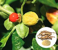 Description - Withania somnifera, known commonly as ashwagandha, Indian ginseng, poison gooseberry, or winter cherry, Withania Somnifera grows abundantly in India (especially Madhya Pradesh), Pakistan, Bangla Desh, Sri Lanka and parts of northern Africa. Withania Somnifera is a perennial shrub from the Solanaceae or Nightshade family. The Ashwagandha root extract has been traditionally used as a tonic and as a sedative.