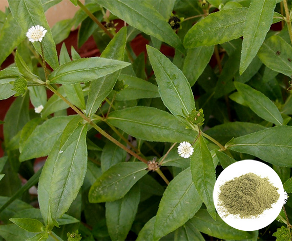 Description - - It grows commonly in moist places as a weed all over the world. It is widely distributed throughout India, China, Thailand, and Brazil. In ayurvedic medicine, the leaf extract is considered a powerful liver tonic, re-juvenative, and especially good for the hair. A black dye obtained from Eclipta Alba is used for dyeing hair and tattooing. Eclipta Alba also has traditional external uses like athlete foot, eczema and dermatitis, on the scalp to address hair loss and the leaves have been used in the treatment of scorpion stings. It is used as anti-venom against snakebite in China and Brazil.